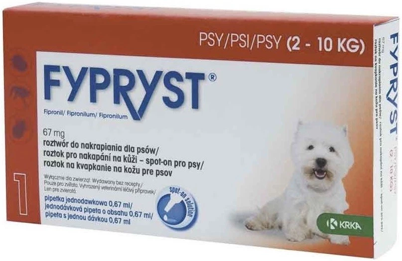 Cechy preparatu do nakraplania psów Krka FYPRYST SPOT-ON 2-10kg: |