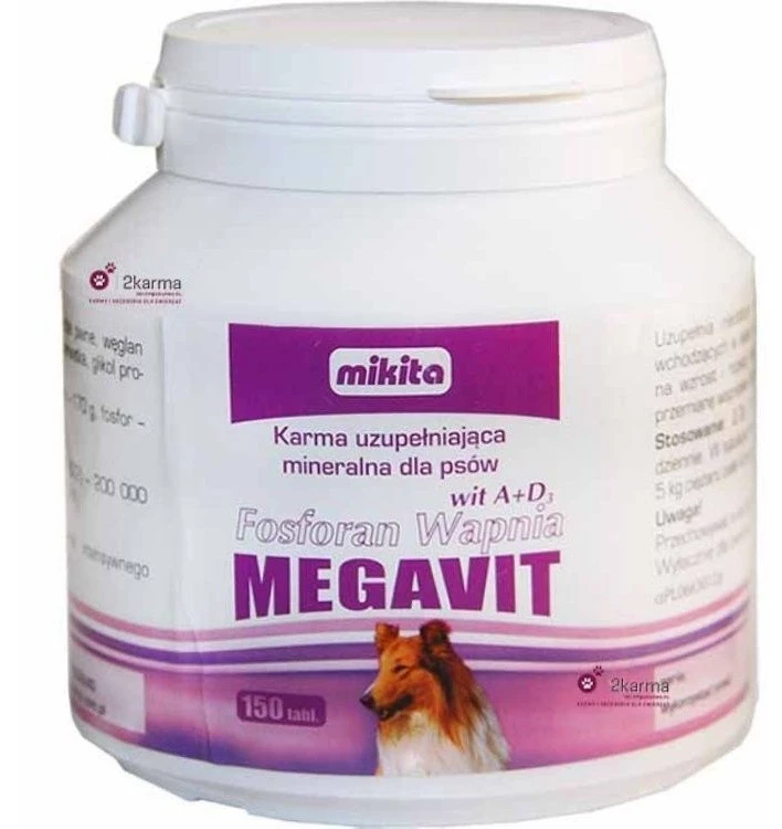 MIKITA MEGAVIT Fosforan wapnia A+D3 dla szczeniąt na kości 150tabl.