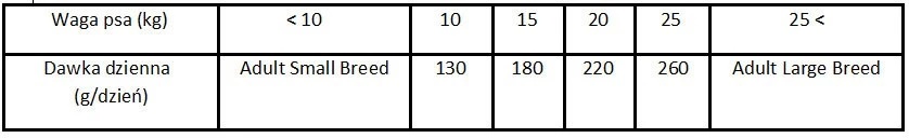 - Dzienna dawka może się różnić w zależności od środowiska, aktywności i wieku Twojego psa.