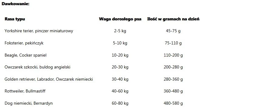 - Jagnięcina z ryżem - szczególnie polecana dla dorosłych psów o wrażliwym układzie pokarmowym oraz tych mających problemy ze skórą i sierścią.