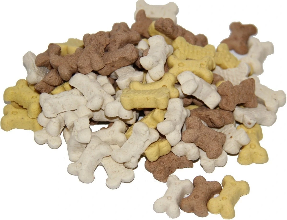 Przekąska dla psa w postaci małych waniliowych kosteczek.