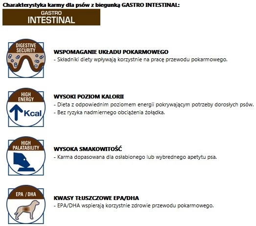 Charakterystyka karmy dla psów z biegunką GASTRO INTESTINAL: