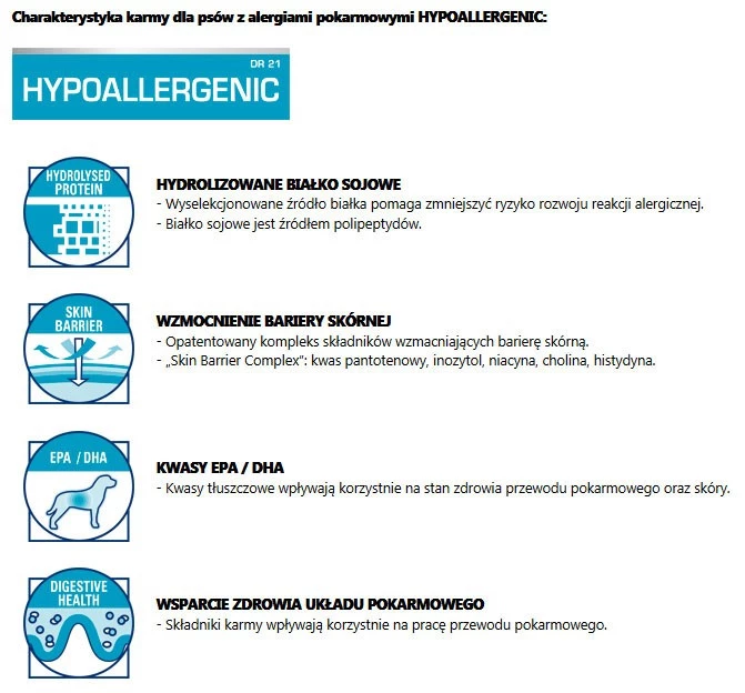 Charakterystyka karmy dla psów z alergiami pokarmowymi HYPOALLERGENIC: