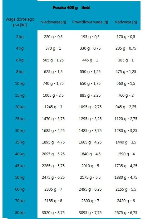 ŻYWIENIE MIESZANE: Karma sucha + Puszka 400 g (ilość) | |||