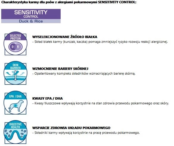 Charakterystyka karmy dla psów z alergiami pokarmowymi SENSITIVITY CONTROL: