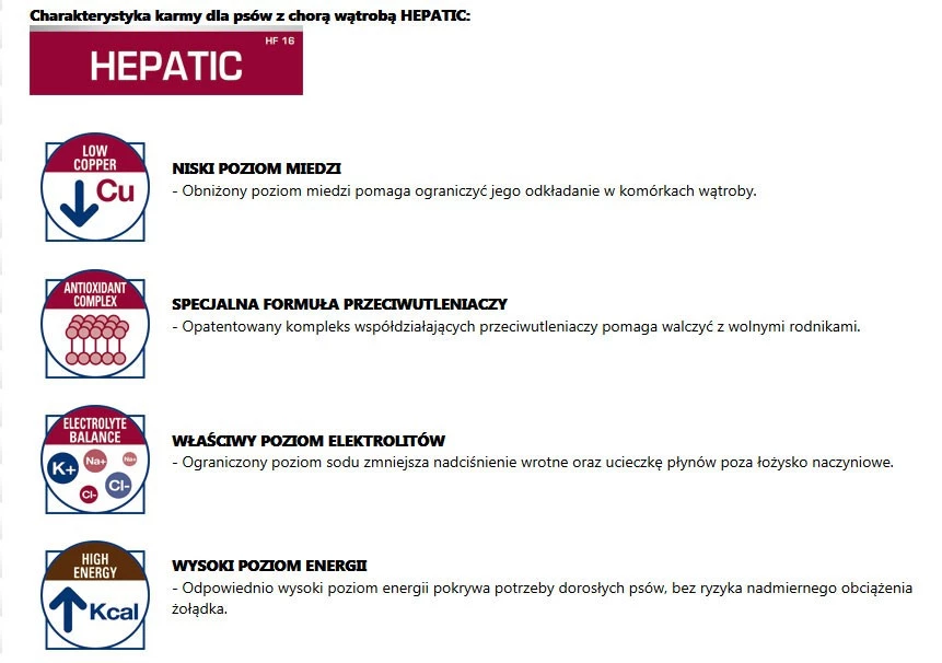 Charakterystyka karmy dla psów z chorą wątrobą HEPATIC: