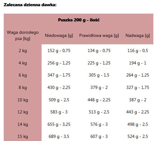 ŻYWIENIE MIESZANE: Karma sucha + Puszka 200 g (ilość) | |||