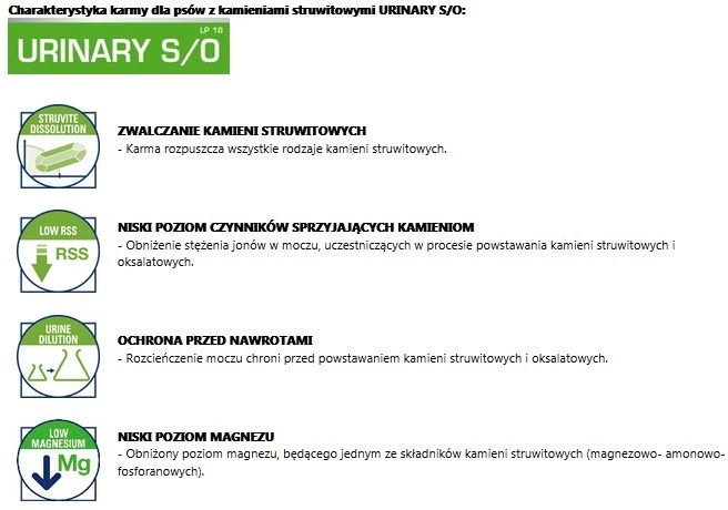 Charakterystyka karmy dla psów z kamieniami struwitowymi URINARY S/O: