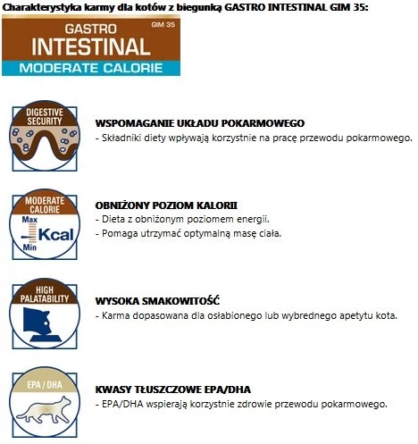 Charakterystyka karmy dla kotów z biegunką GASTRO INTESTINAL GIM 35: