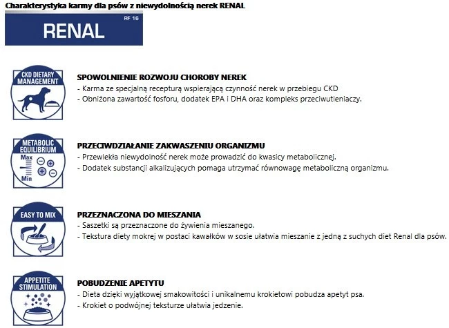 Charakterystyka karmy dla psów z niewydolnością nerek RENAL