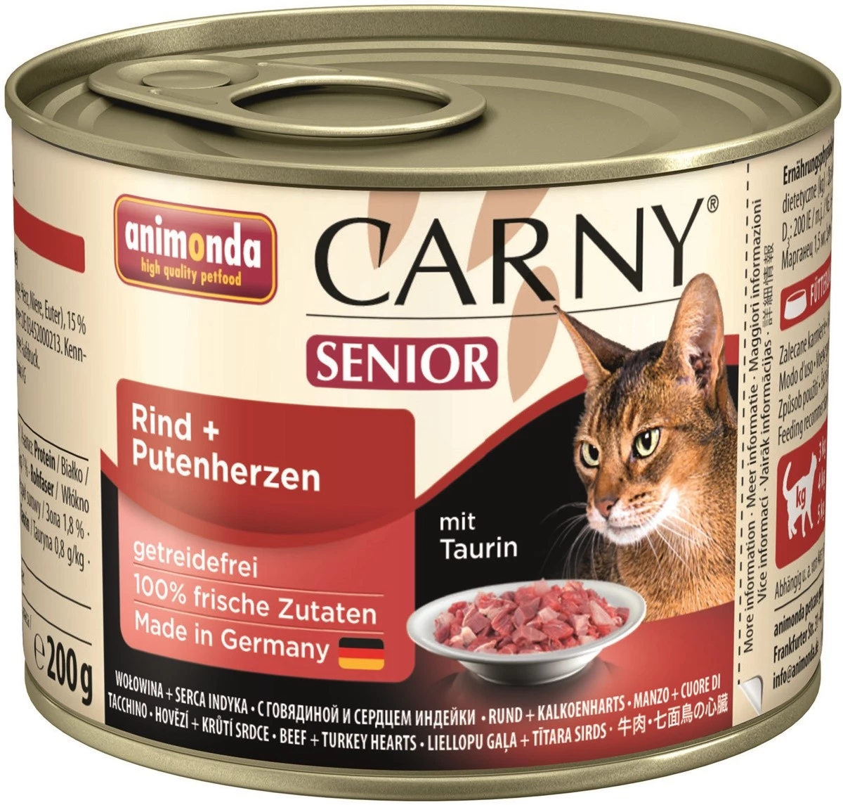 Cechy karmy w puszce z wołowiną i sercami indyczymi Animonda Carny: