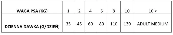 - Dzienna dawka może się różnić w zależności od środowiska, aktywności i wieku Twojego psa.