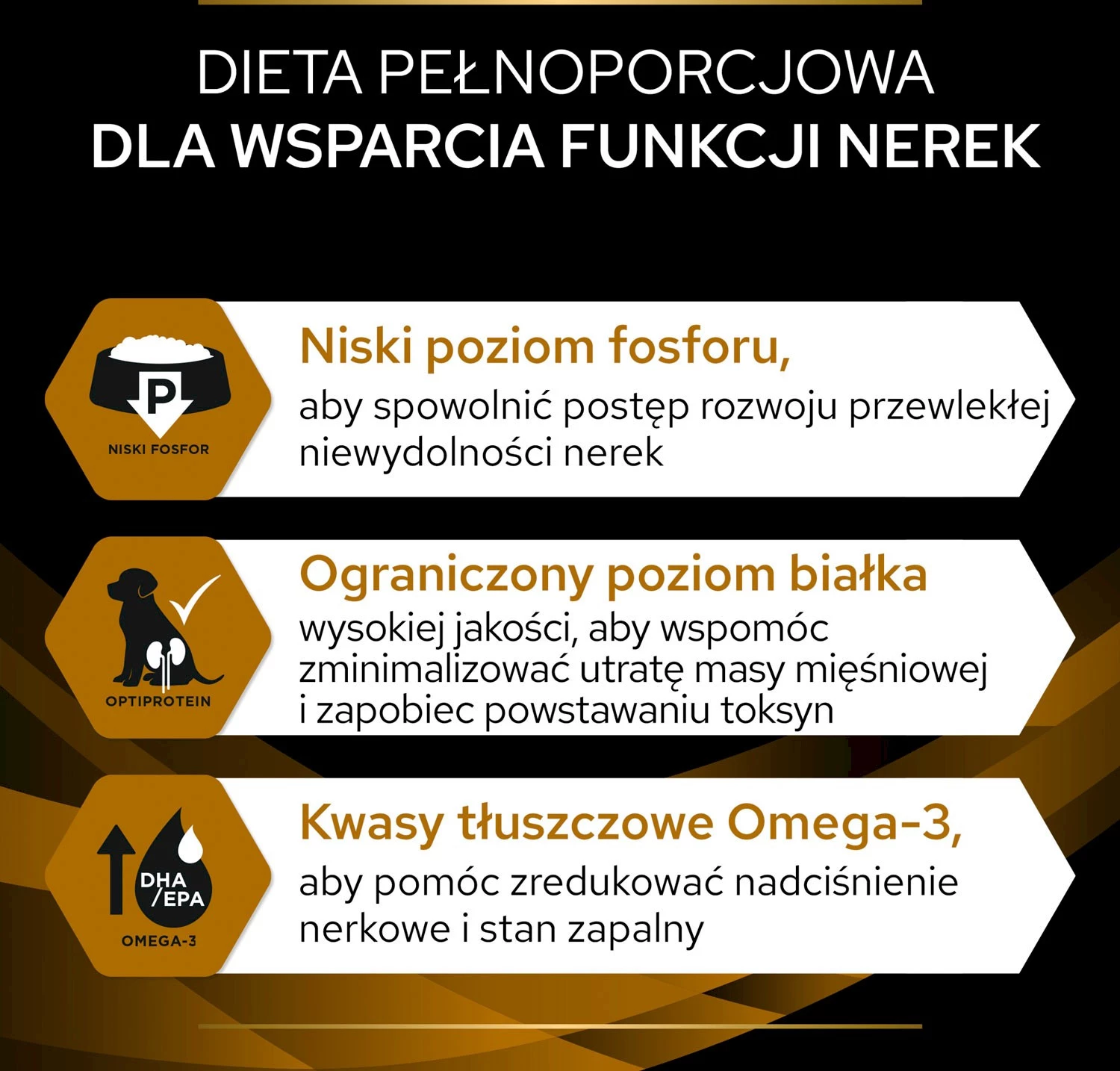 - Dieta pełnoporcjowa dla psów na wsparcie funkcji nerek i ich niewydolności.