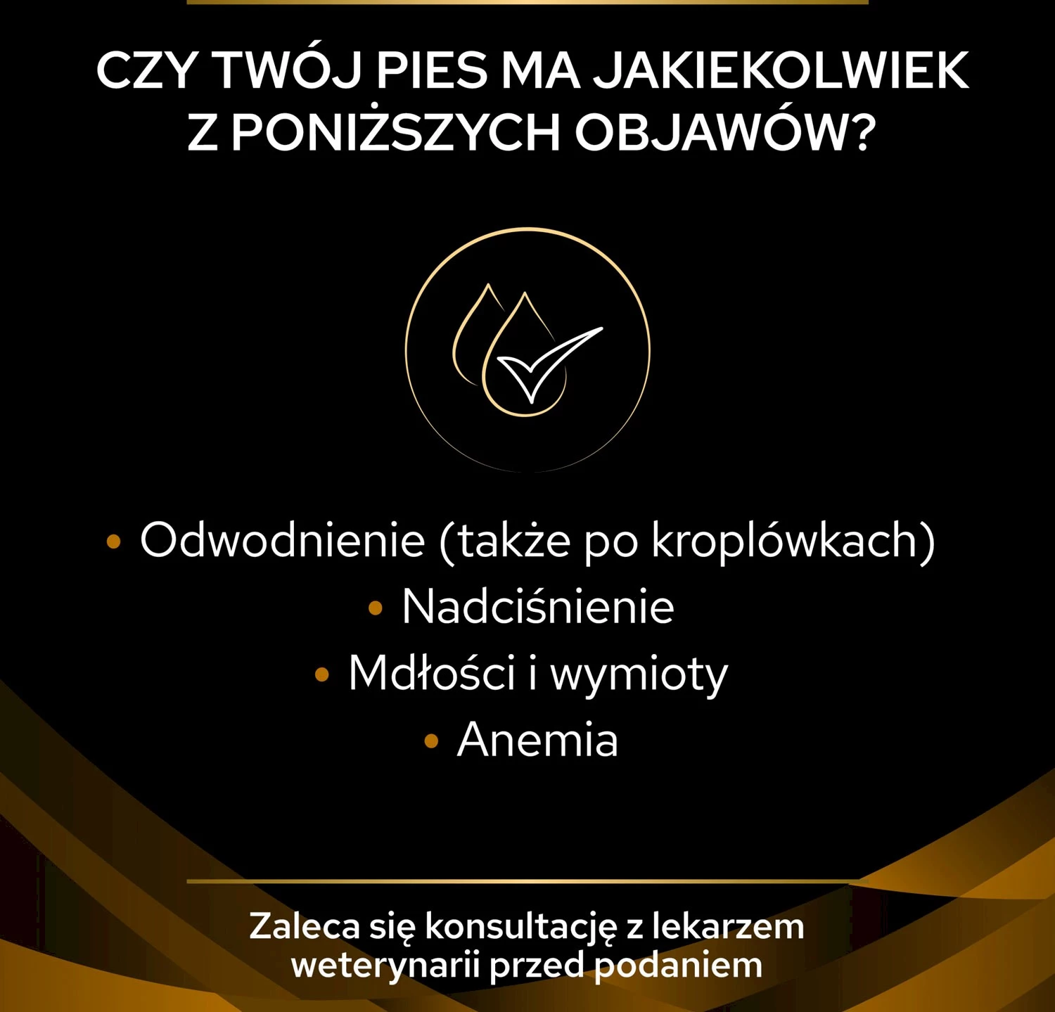 Typowe objawy u psa do stosowania karmy Purina Pro Plan Veterinary Diets NF Renal Function: