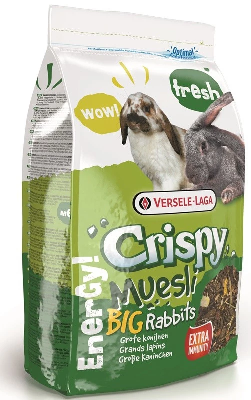 - CRISPY MUESLI BIG RABBITS to kompletna karma dla królików średnich i dużych oraz tych przebywających na zewnątrz.