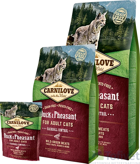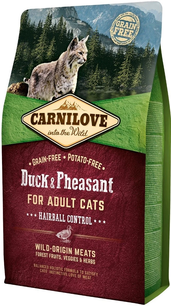 Cechy karmy CARNILOVE Duck & Pheasant Adult Hairball Control: |