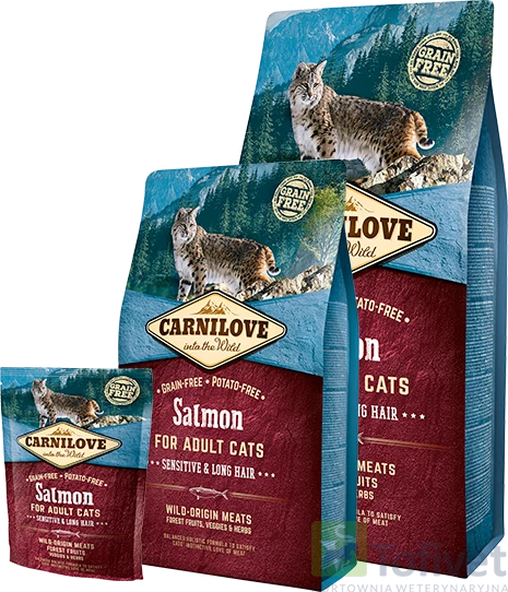 Cechy karmy CARNILOVE Salmon Sensitive & Long Hair Adult: |