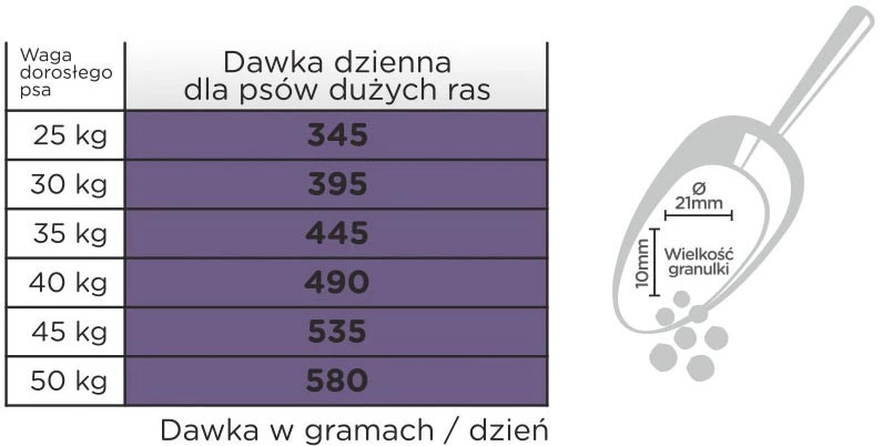 - Kompletna, zbilansowana karma specjalnie opracowana dla psów dużych ras (25-45kg wagi)