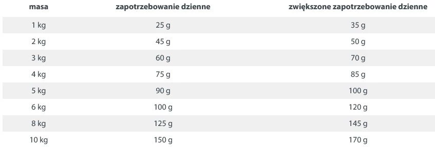 - Niemiecka karma doskonale zbilansowana, umiarkowana ilość energii przy jednocześnie właściwej ilości białka i tłuszczu.