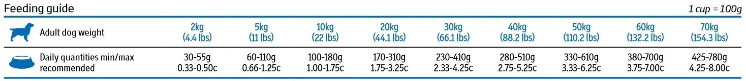 Ryż, owies, tłuszcz zwierzęcy, suszone całe jaja, siemię lniane, hydrolizowane białka zwierzęce, suszona miazga buraczana, olej rybny, węglan wapnia, olej roślinny, chlorek sodu. Źródło białka: suszone całe jaja. Substancja alkalizująca mocz: cytrynian potasu (9g/kg). Całkowita zawartość witaminy D: 650JM.