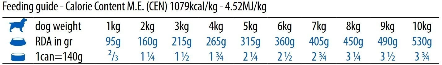 filet z dorsza (60%), śledź, tuńczyk, dynia (5%), batat, olej z ryb, tłuszcz zwierzęcy, krewetka, fruktooligosacharydy, siarczan chondroityny, glukozamina, witaminy, minerały.