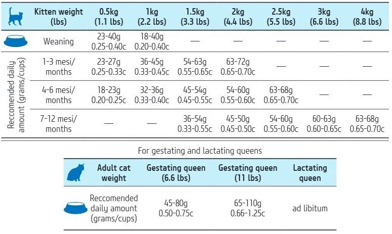 - Karma pełnoporcjowa dla kociąt oraz ciężarnych lub karmiących kotek.