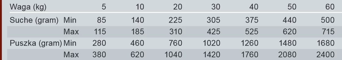Należy skonsultować się z lekarzem weterynarii przed zastosowaniem tej diety.