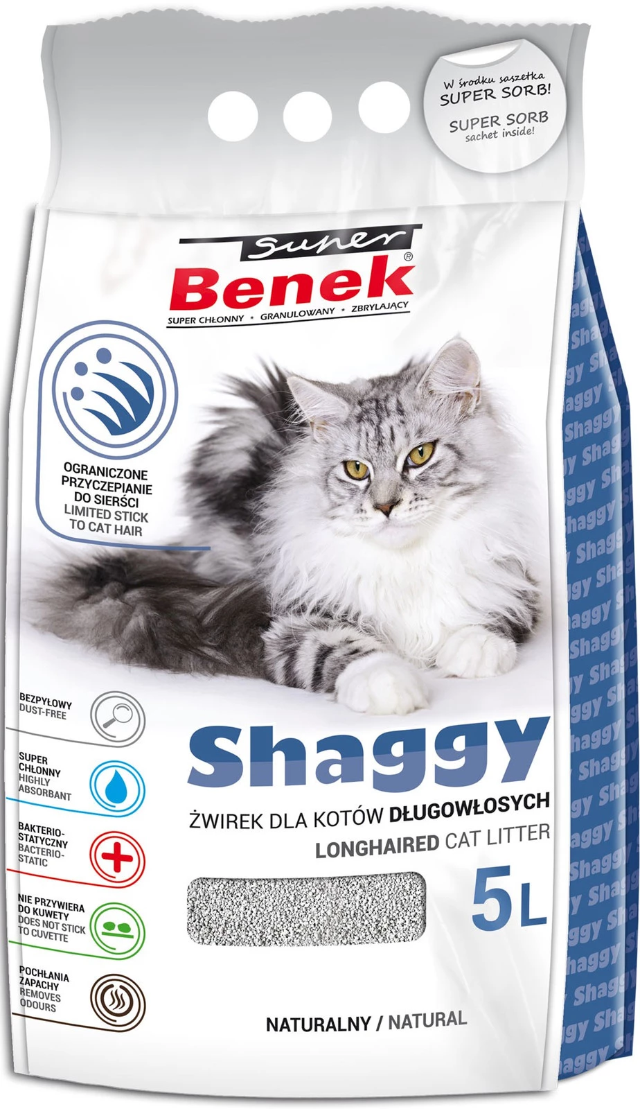 SUPER BENEK Shaggy - Żwirek bentonitowy 5l