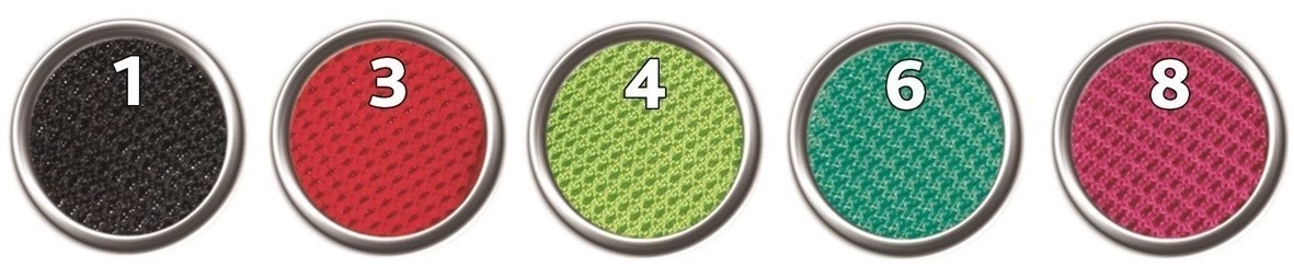 - Wykonane z oddychającego materiału siateczkowego i smyczy taśmowej.