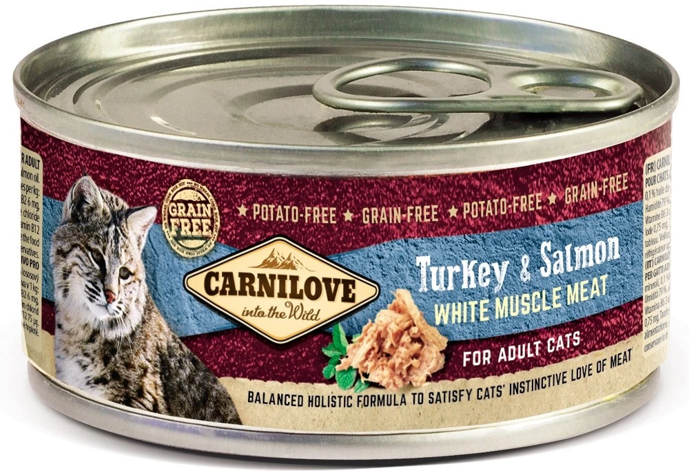 Cechy puszki CARNILOVE Turkey & Salmon for Adult: |
