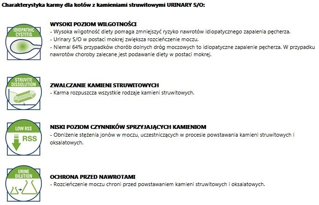 Charakterystyka karmy dla kotów z kamieniami struwitowymi URINARY S/O: