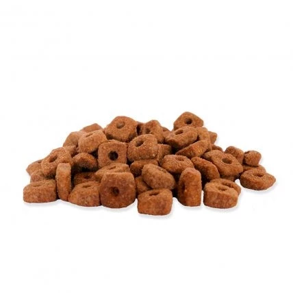 Mięso (świeże mięso: drobiowe, wieprzowe, wołowe – 20%; suszone mięso drobiowe 12%; hydrolizowana wątroba wieprzowa 3,5%), kukurydza, pszenica, ryż, mąka pszenna, otręby pszenne, tłuszcz drobiowy, wysłodki buraczane suszone 2%, drożdże piwne, suszona miazga jabłkowa 1%, zarodki pszenne, olej z łososia, korzeń cykorii 0,01%, juka 0,005%.
