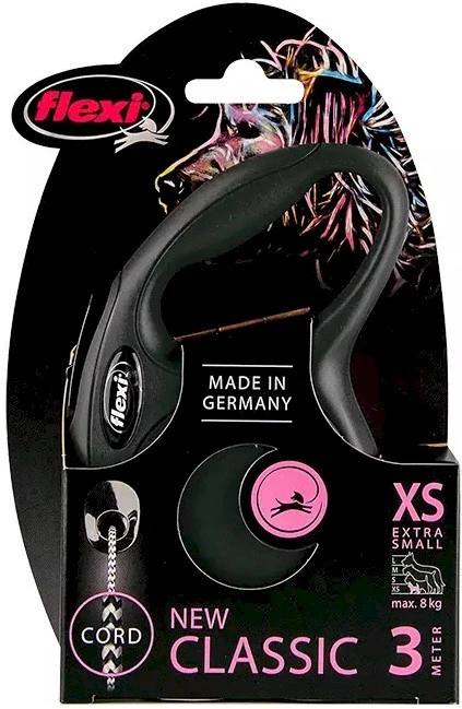 FLEXI NEW CLASSIC Smycz sznurowa XS / 3m czarna