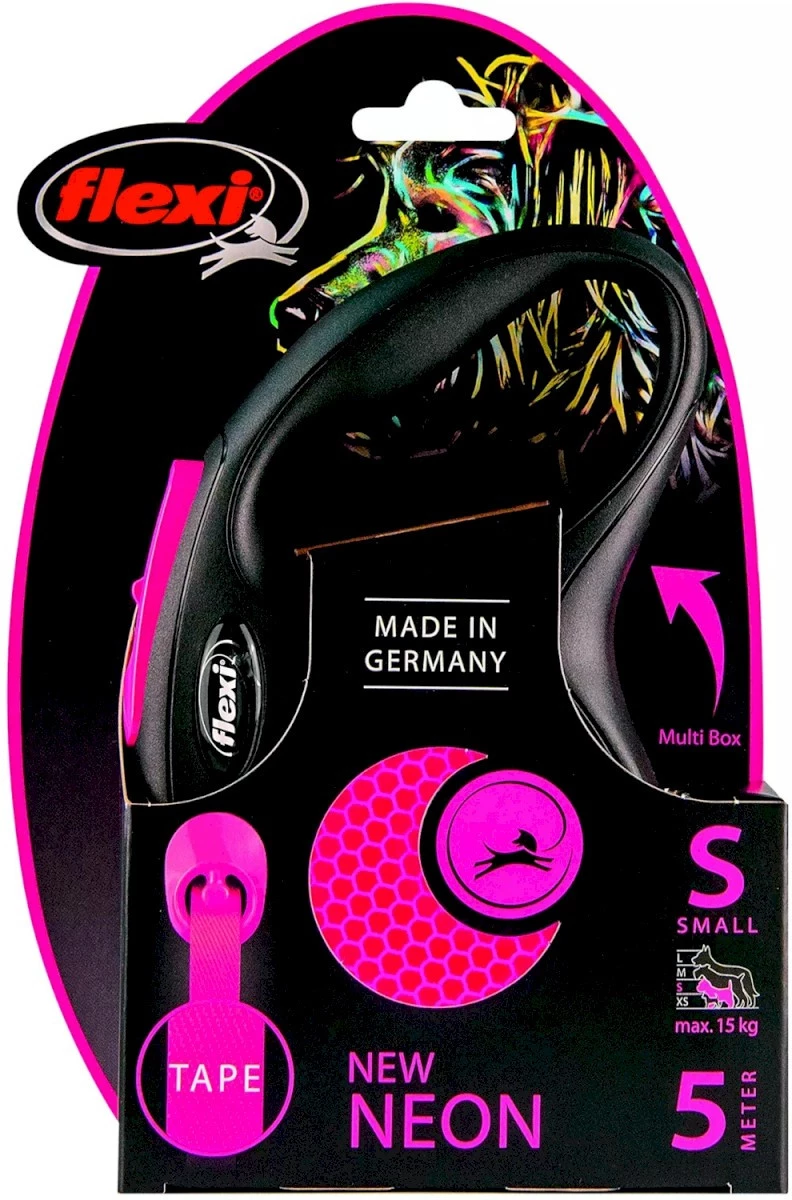 FLEXI NEW NEON Smycz taśmowa S / 5m różowa