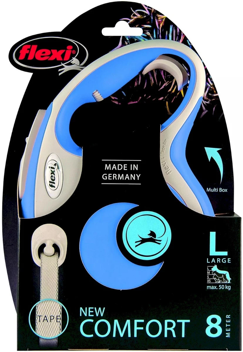 FLEXI NEW COMFORT Smycz taśmowa L / 8m niebieska