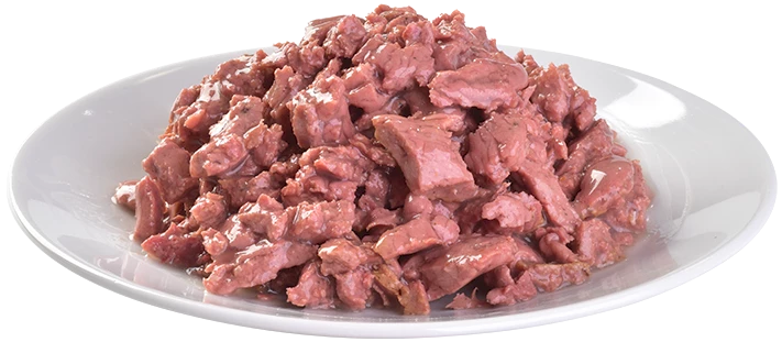 Skład: filety z mięsa 85% (62% kurczak, 15% wątróbka, 4 % indyk, 4 % łosoś), bulion, 1 % rokitnik, 0,5 % nasturcja, minerały, skrobia grochowa.
