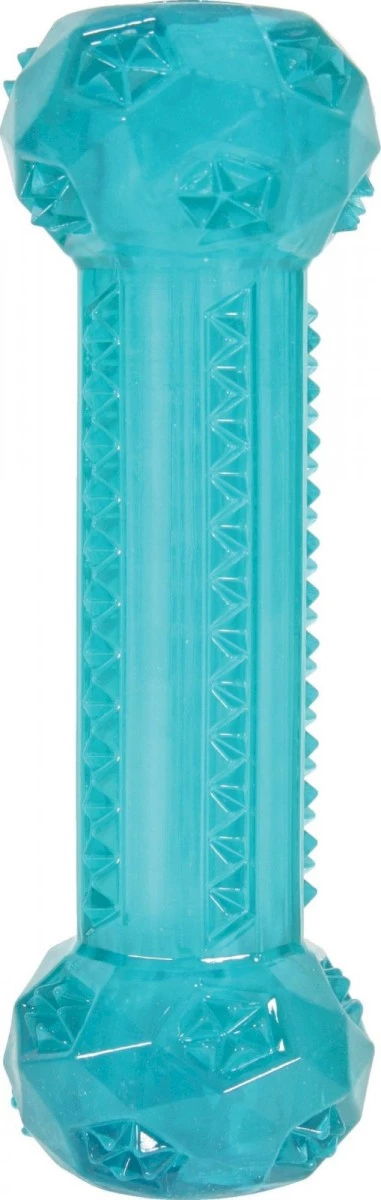 - Gumowy patyk masujący psie dziąsła to wytrzymała zabawka w błyszczącym kolorze.