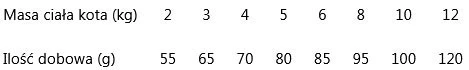 - Podawaj pokarm suchy lub zwilżony letnią wodą i stosuj przez okres 3–8 tygodni.