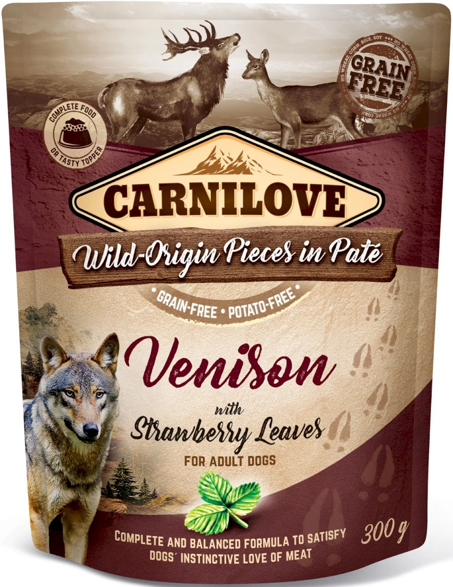 Cechy mokrej karmy CARNILOVE Dog Pouch Venison with Strawberry Leaf: |