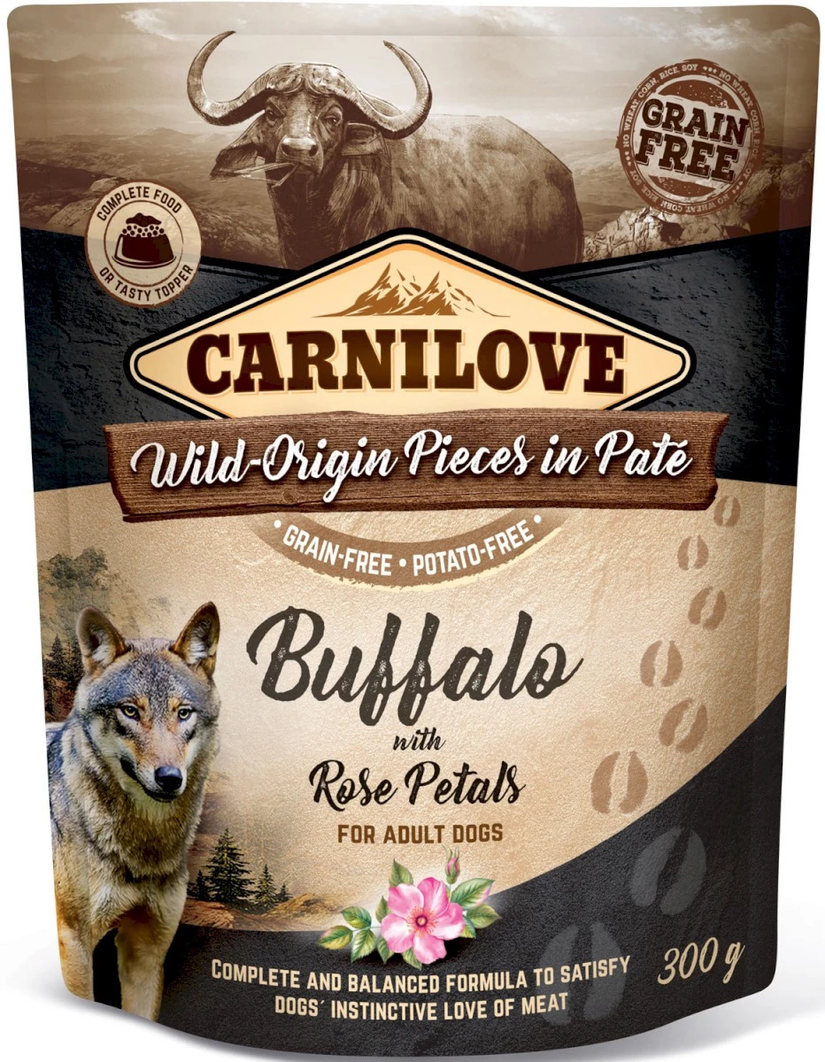Cechy mokrej karmy CARNILOVE Dog Pouch Buffalo with Rose Petals: