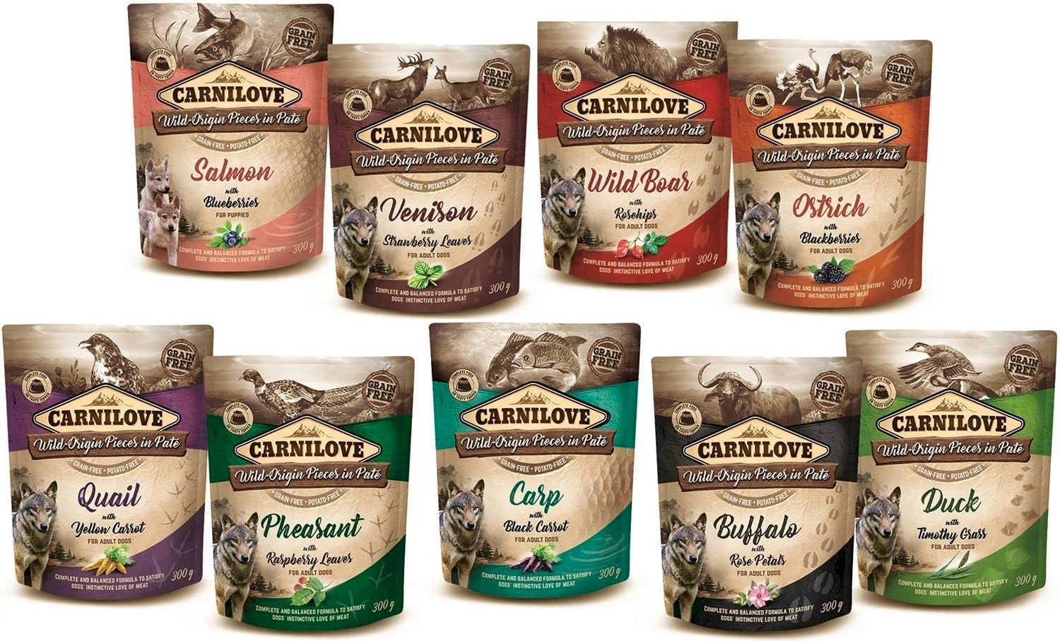 Cechy mokrej karmy CARNILOVE Dog Pouch Pheasant with Raspberry Leaves:
