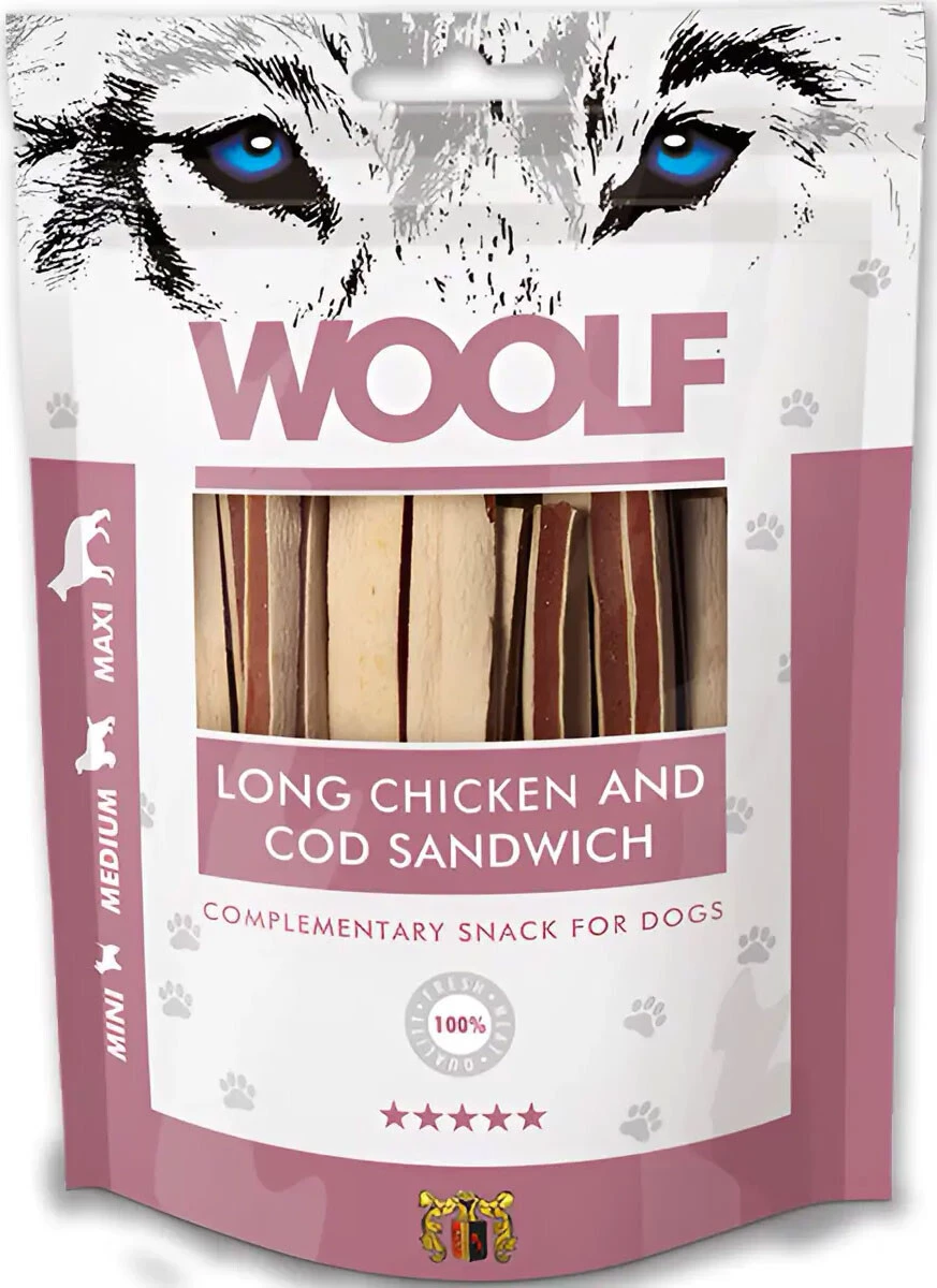 WOOLF Long Chicken Cod Sandwich Kurczak Dorsz 100g