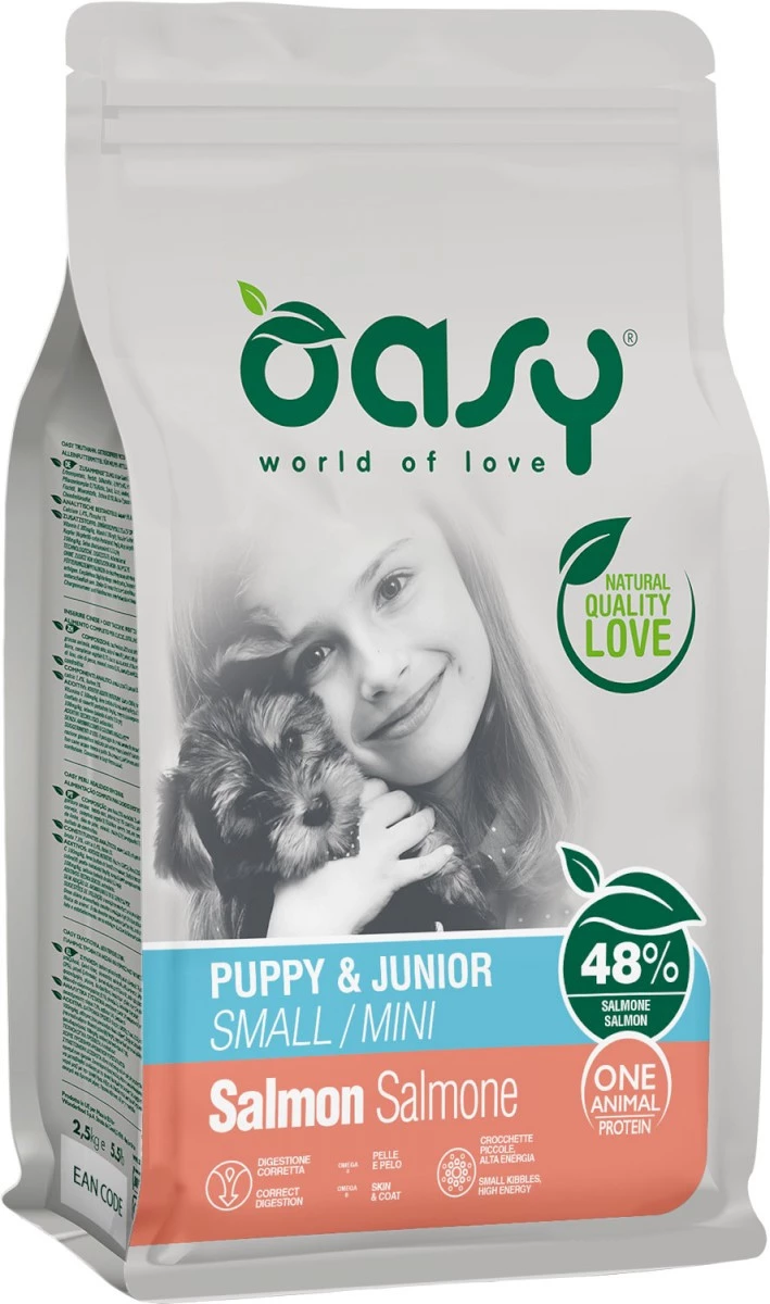 Cechy karmy z Łososia OASY OAP Puppy & Junior Small / Mini Salmon: