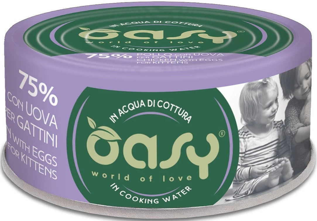 Cechy karmy w puszce OASY More Love Chicken with Eggs for Kittens: |