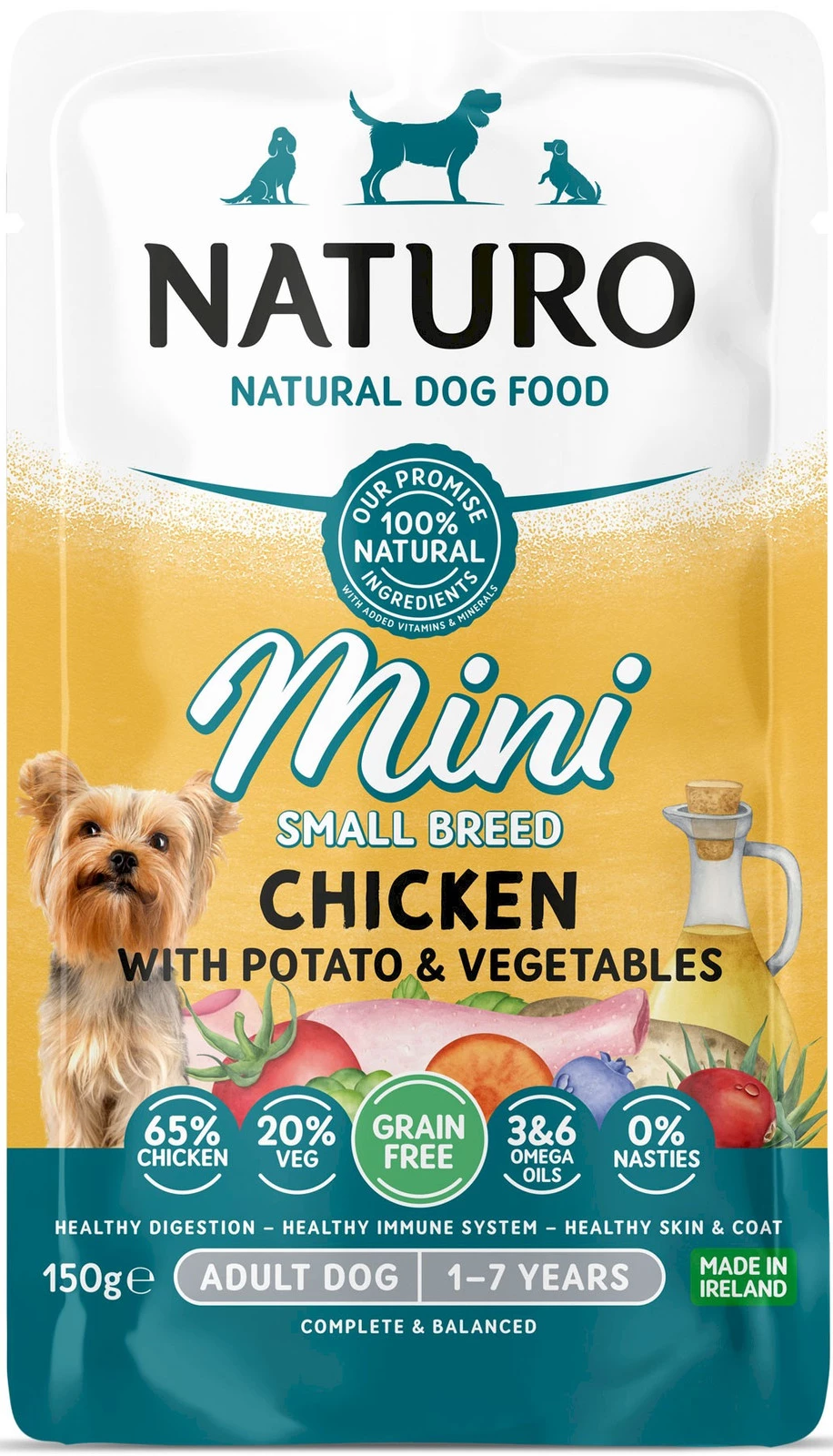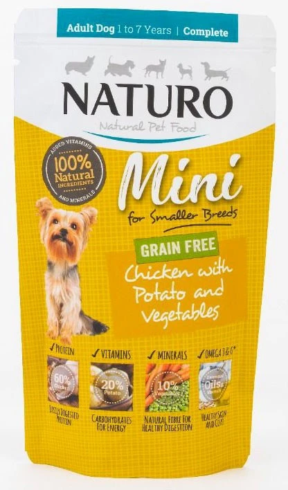 Cechy saszetki karmy NATURO Adult Dog Mini Grain Free Chicken with Potato and Vegetables: |
