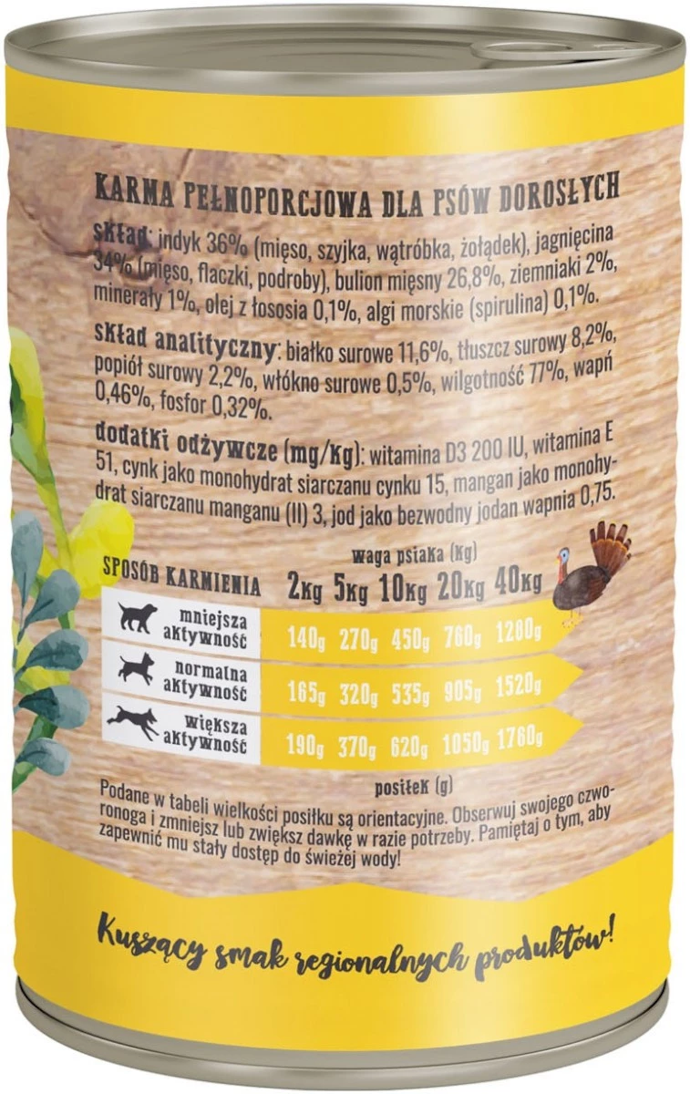 Cechy puszki dla psa Wiejska Zagroda Indyk z Jagnięciną bez zbóż: |