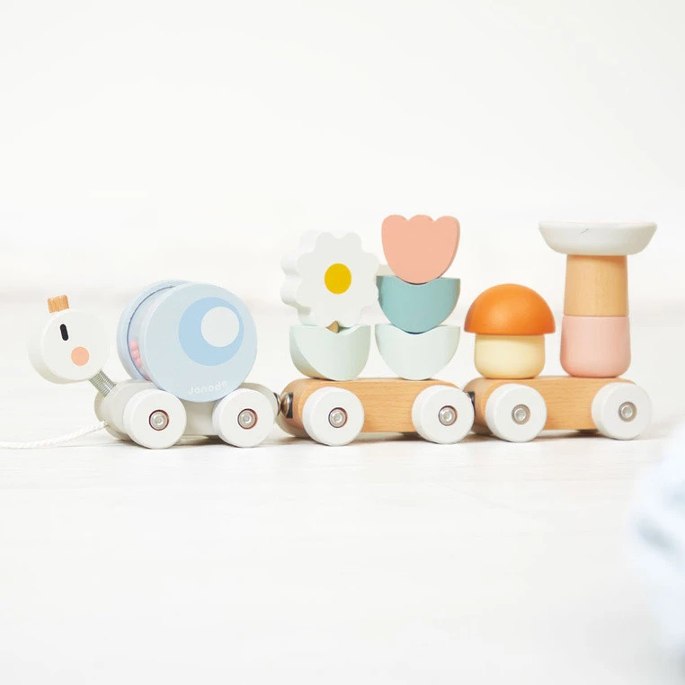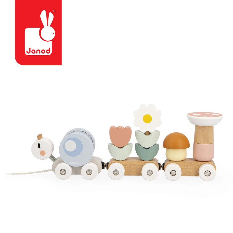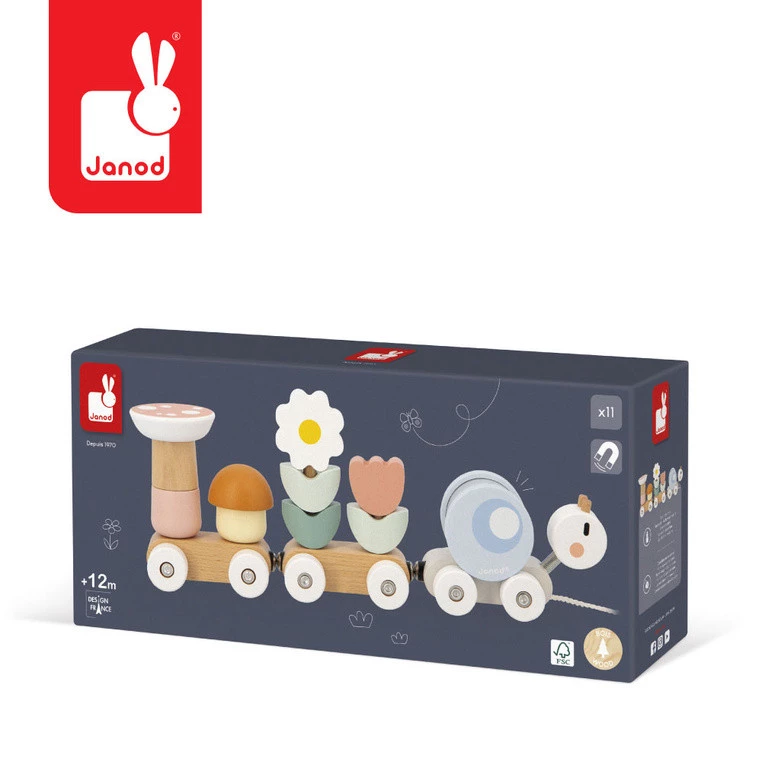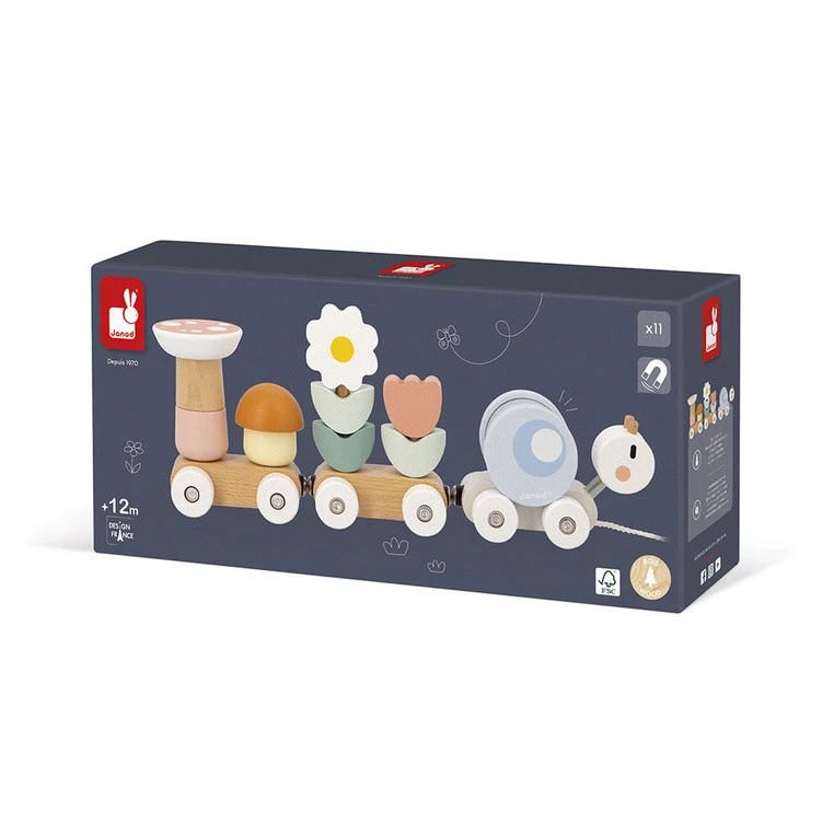 Janod Magnetyczny pociąg z klockami i grzechotką do ciągnięcia Ślimak Swee 12+