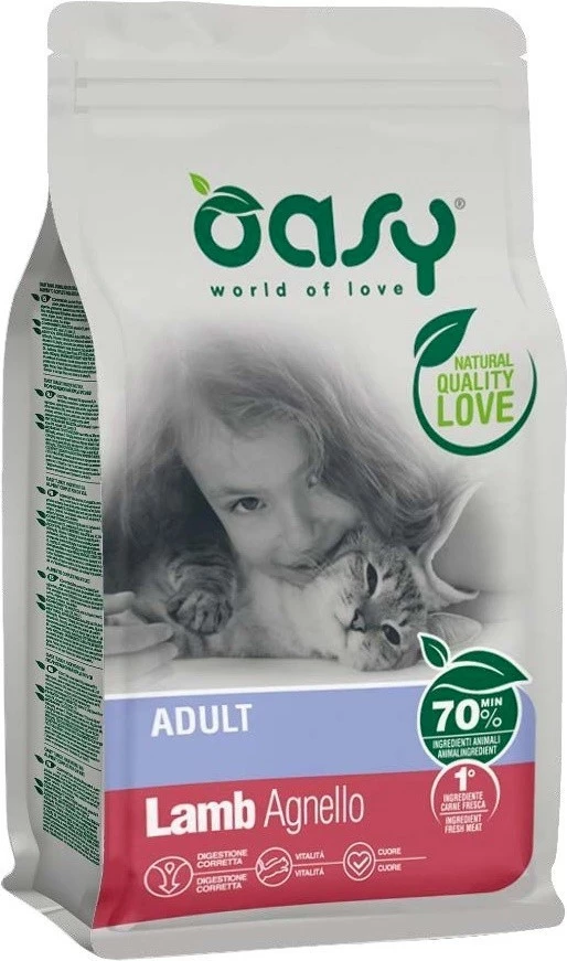 - Oasy oferuje szeroką gamę pełnowartościowych karm dla kotów, dostępnych w różnych formułach i formatach, opracowanych dla każdego etapu życia i wielkości.