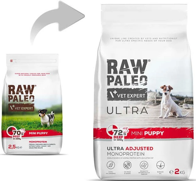 Sucha karma monoproteinowa RAW PALEO Mini Puppy Ultra Monoprotein Beef to: