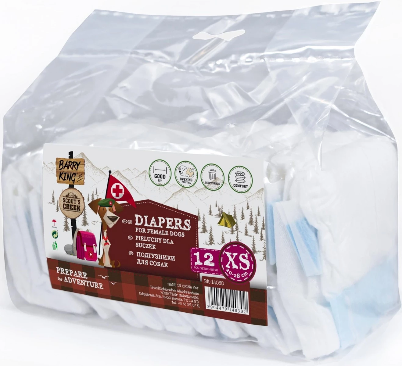 Cechy pieluch dla suk BARRY KING Dlapers for female dogs: |